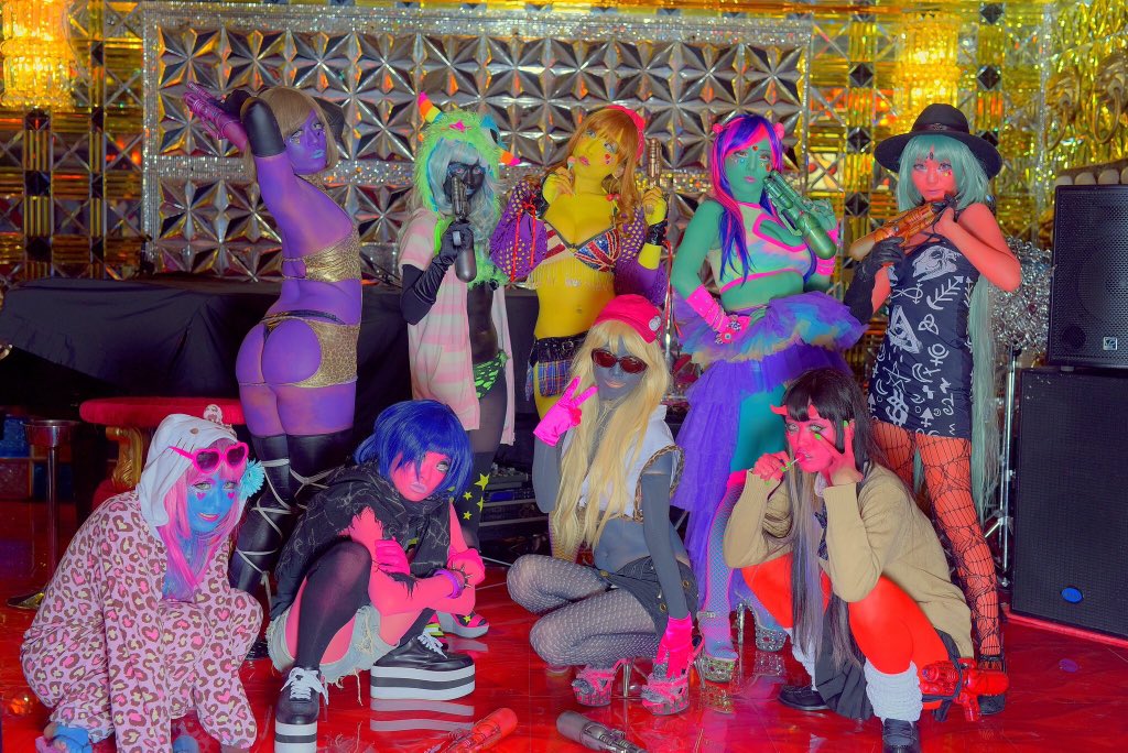 Destaca el uso de colores llamativos tanto en vestimenta, piel, accesorios y cabello.
